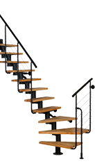 ATRIUM Dixi Plus is a modern alternative in the world of modular stairs, featuring a 90° turn (landing). This model is ideal for situations where spatial constraints make traditional stair arrangements challenging. It is particularly advantageous when stairs are positioned near perpendicular walls or pillars.