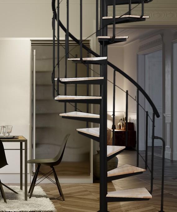 ATRIUM Solo Vertical is a unique model of indoor spiral stairs, combining modern design with functionality. Its compact structure requires minimal space, making it an excellent choice for homes and offices alike.