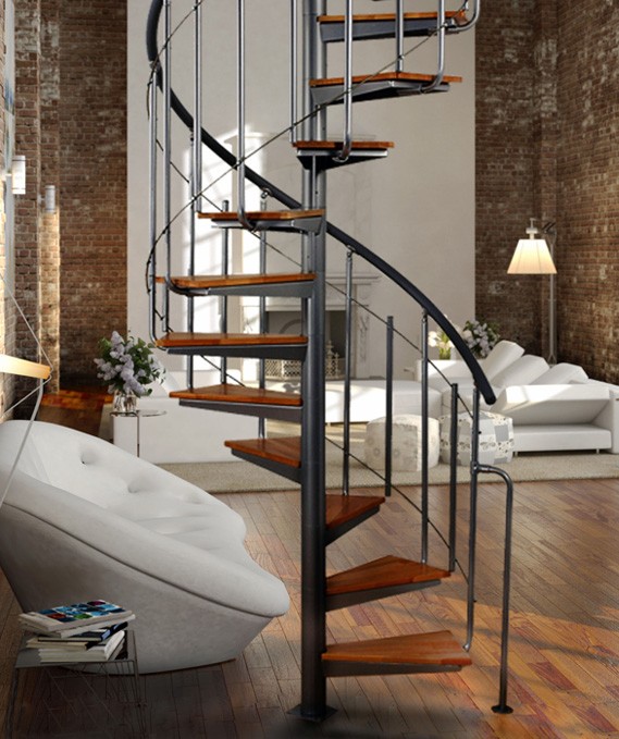 Spiral stairs with a striking railing
