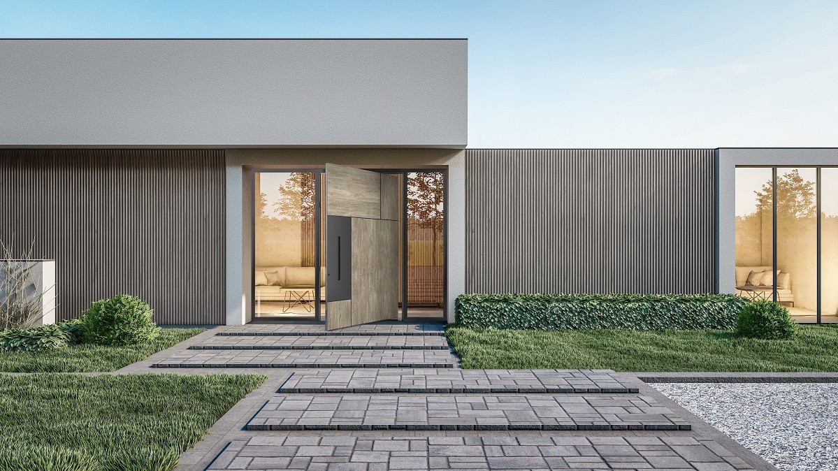 Large-format and representative house entrances that impress with their functions and technical parameters. The pivot front doors are designed flush with the facade. The frame remains minimally visible. The pivot hinges remain invisible thanks to a special bearing in the vertical axis of rotation. The door pane guarantees the best insulation and high strength.
